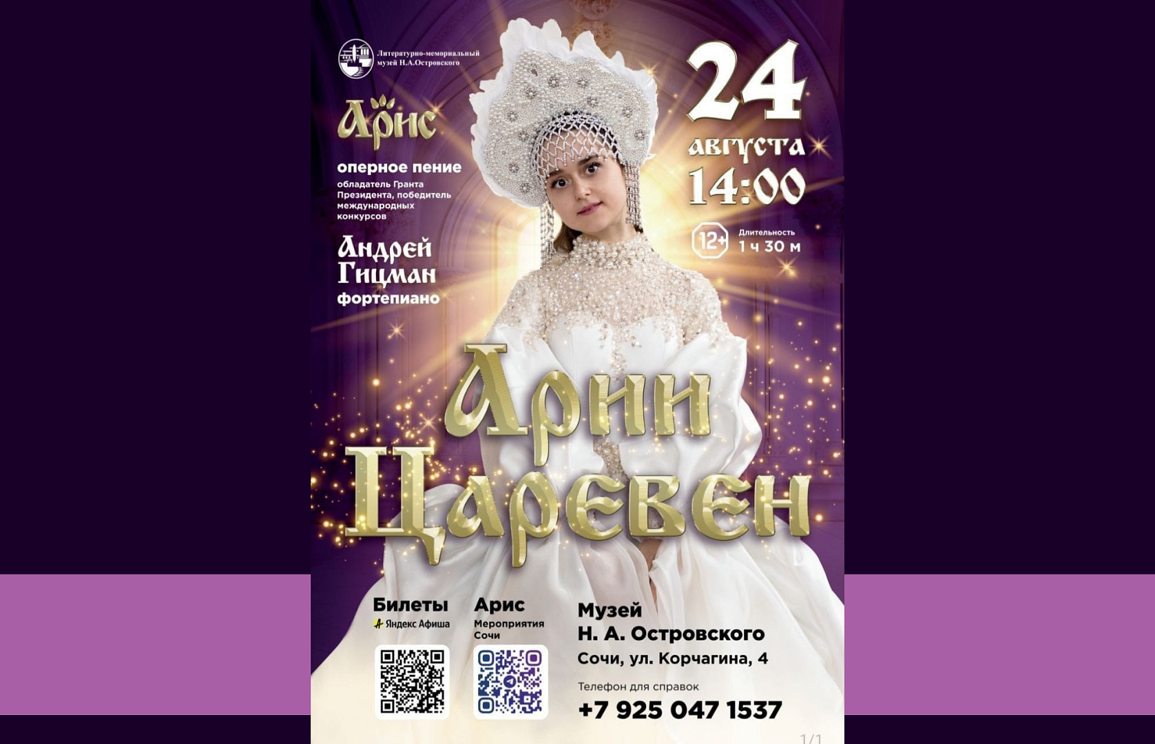 Концерт оперной певицы Арис в Музее Н. Островского