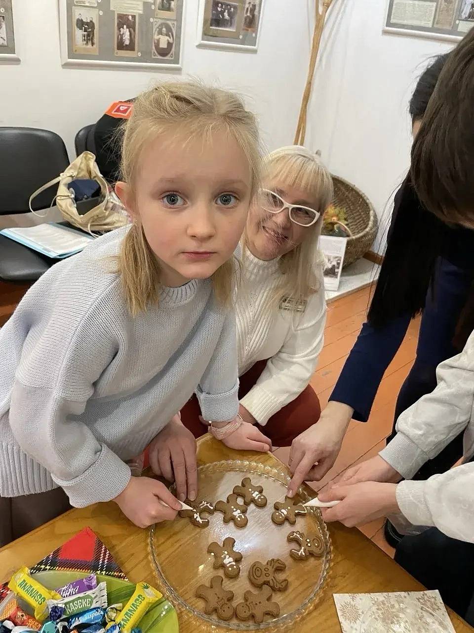Вот и сегодня, собравшись в музее, мы расписывали Рождественские пряники, рисовали ангелочков, изучали традиции празднования Рождества, раздавали сладкие подарочки, пели народные эстонские песни, пробовали вкусную выпечку «Кирью коэр» (пятнистая собачка), пряные «Пипаркоок» (пряное печенье), конфеты!