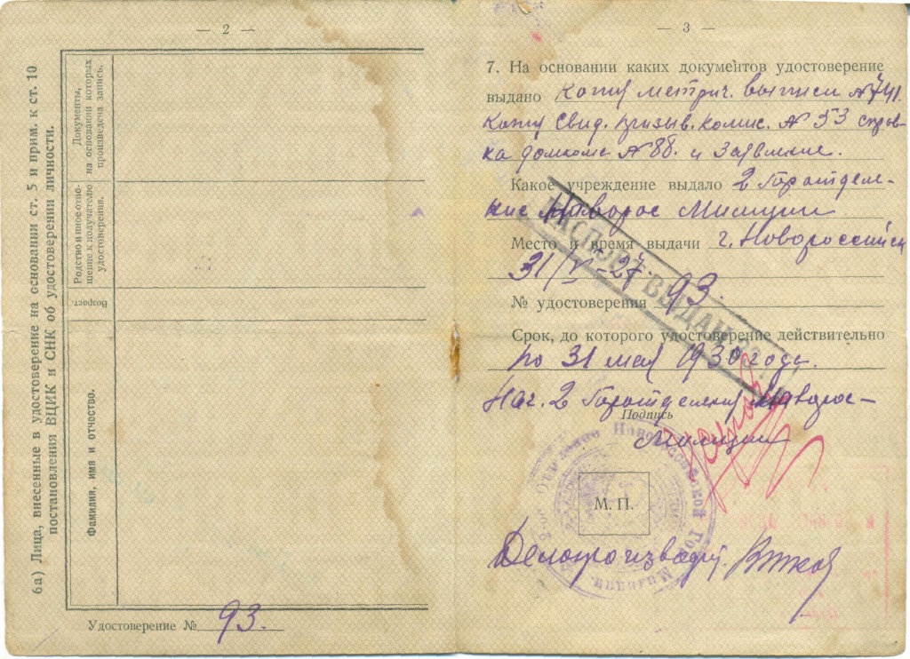 Дата выдачи: 31 мая 1927 г. До 27 декабря 1932 года заменяла паспорт гражданина СССР.