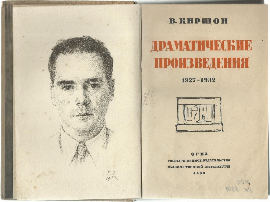 Киршон В. Драматические произведения. 1927-1932. М.: ОГИЗ Государственное издательство художественной литературы, 1933.