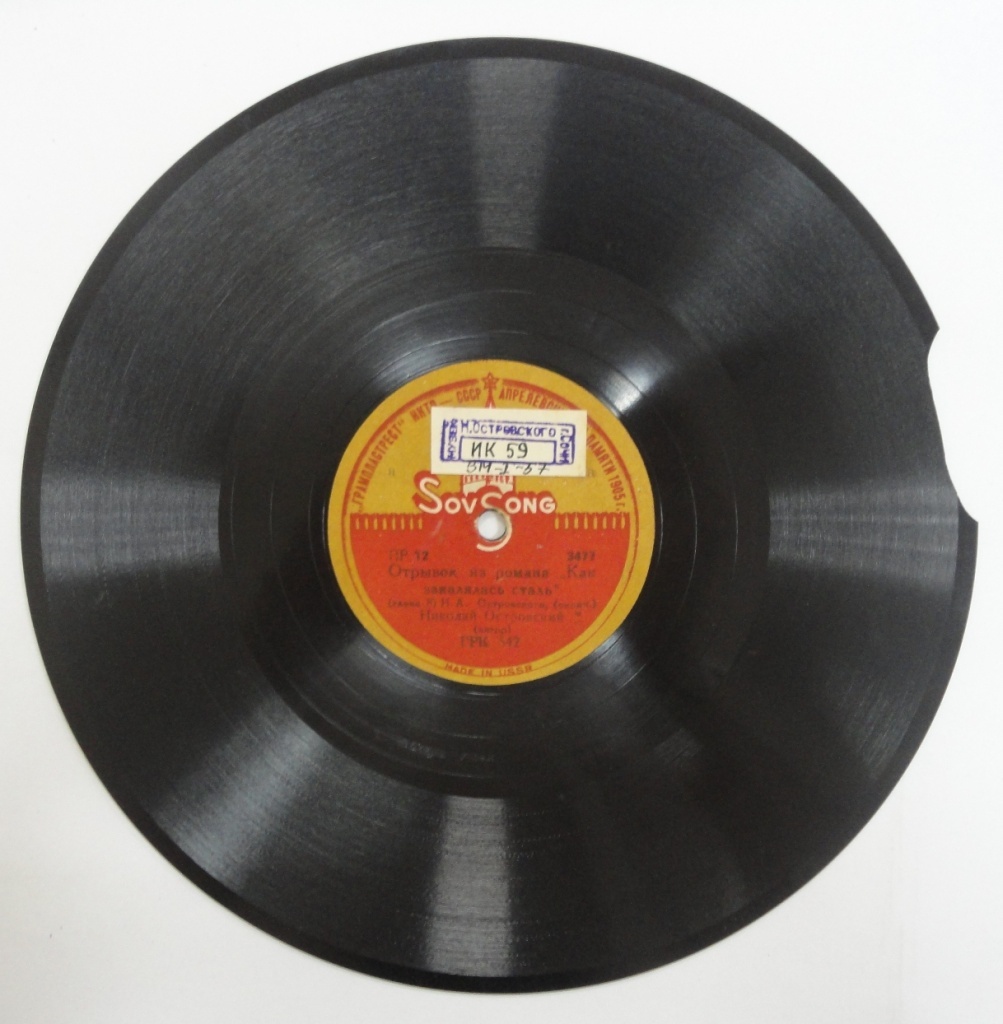 На обратной стороне — окончание отрывка из романа «Как закалялась сталь» (глава 8), читает автор – Н.А. Островский.Пластинка подарена писателю в Сочи 24 ноября 1935 года Григорием Ивановичем Петровским, Председателем ЦИК СССР.