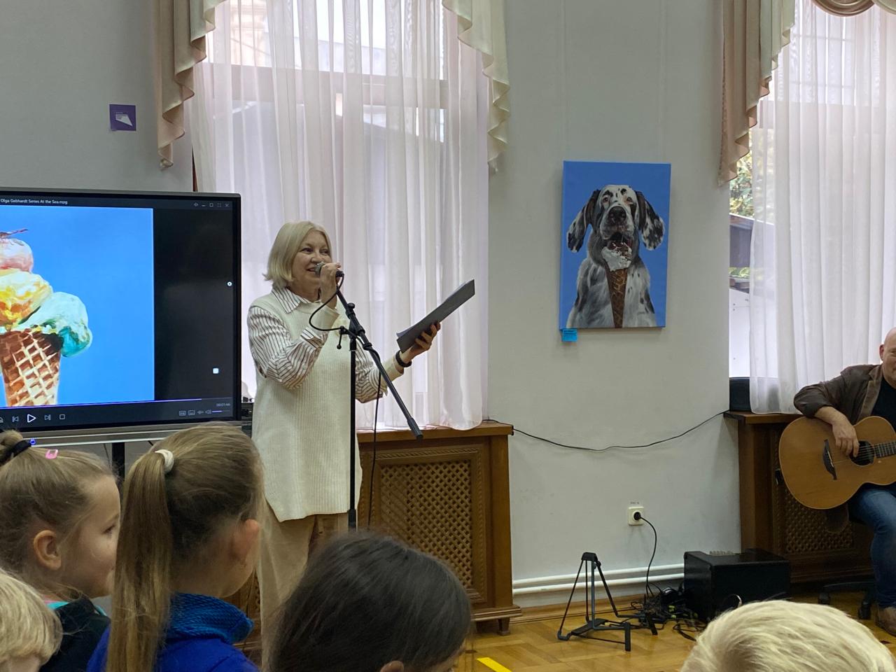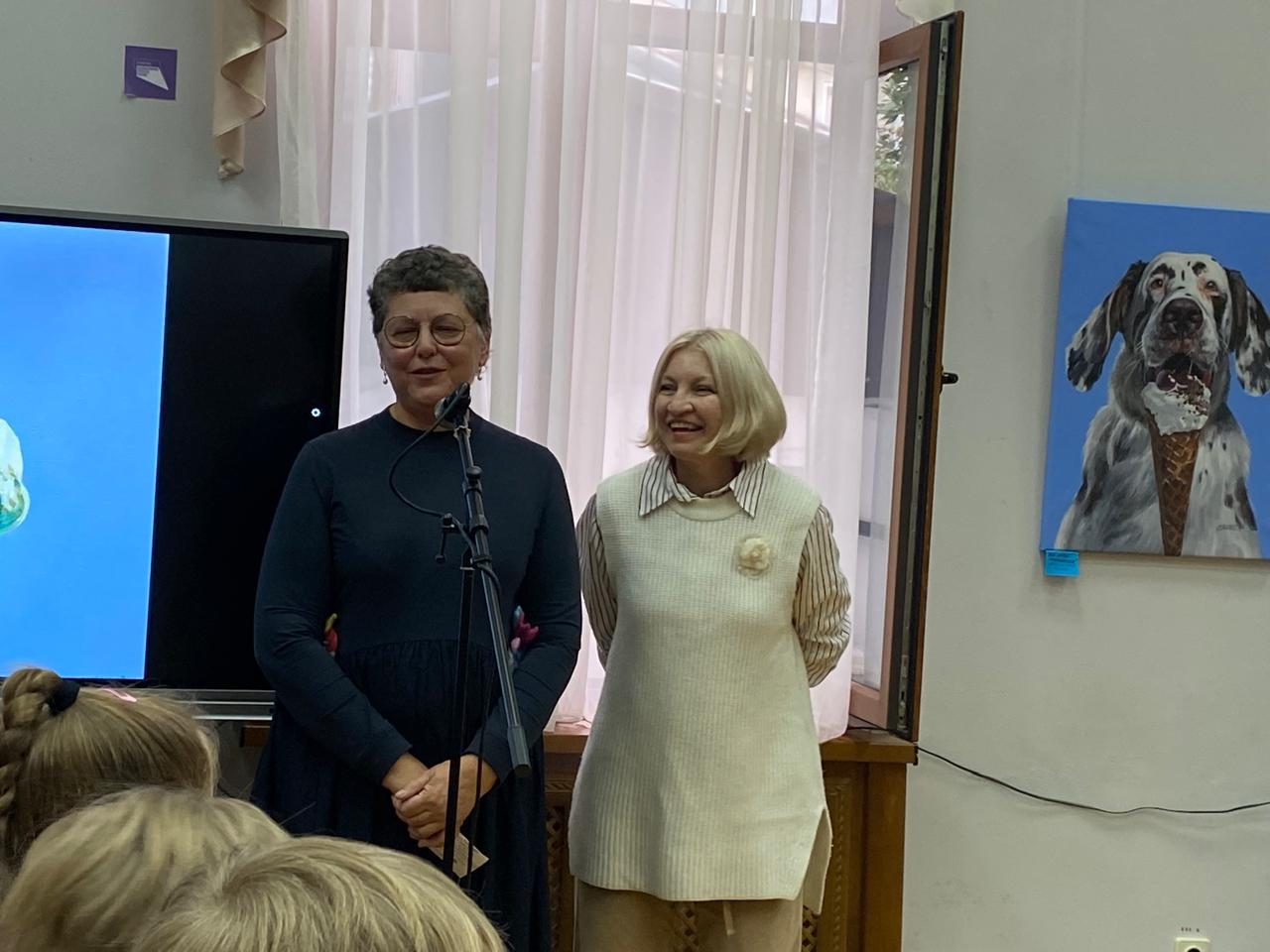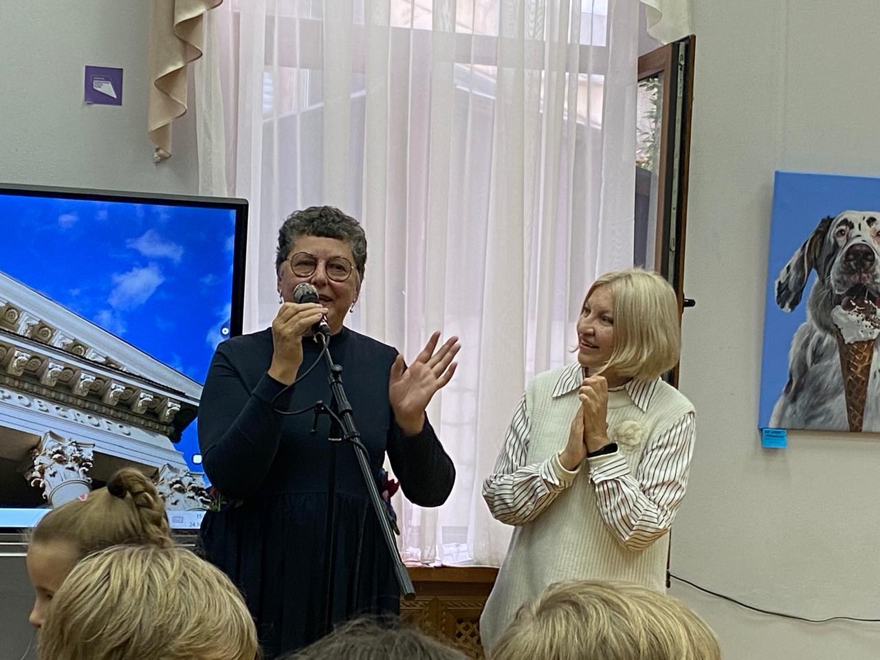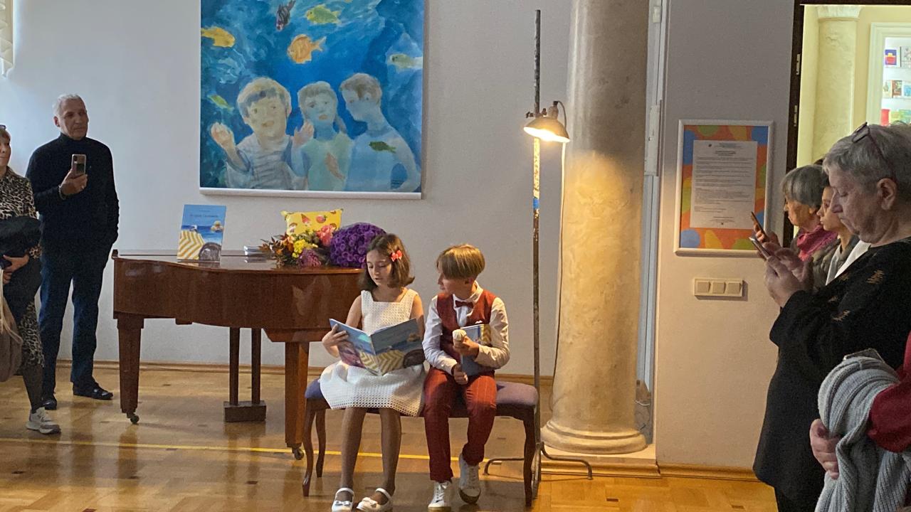 А началось открытие выставки с небольшой сценки из ее книги. Юные актеры детской вокально- хореографической студии «Сочи – Солнышки» при Зимнем театре оживили героев необычной книги. Задумку осуществила постановщик – режиссер Лилия Андреосян. Общим фоном плавно лились звуки гитары в исполнении Алексея Соболя музыканта и друга Ольги Гебхард – Скориковой.