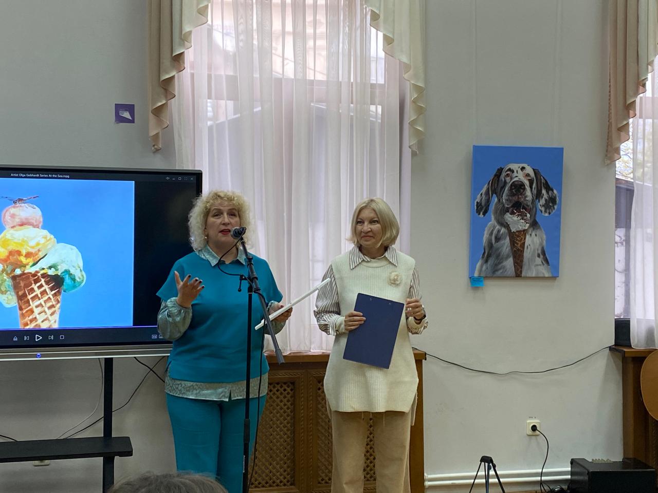 Яркое солнце на картине, веселые мордашки животных, счастливые лица в конопушках забавных молодых девушек и парней – все это предоставила сегодня на открытии своей выставки «Остров Светлого» Ольга Гебхард - Скорикова. Сегодня она была одна в двух лицах: она и художник, она и писатель.