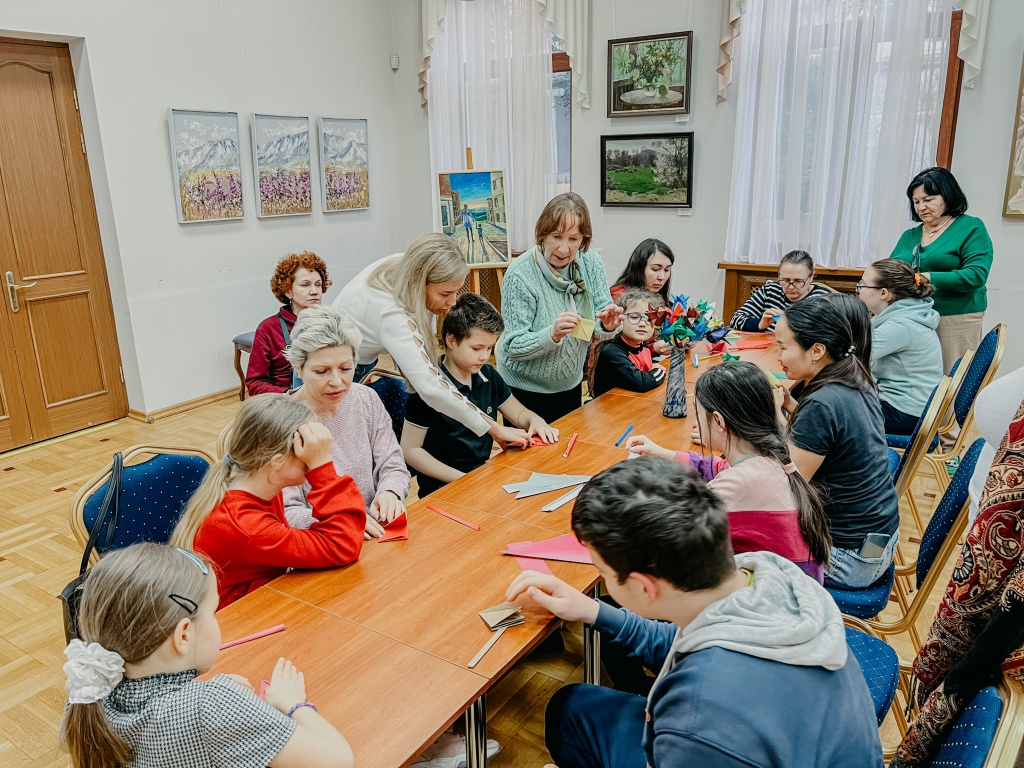 А на память о встрече в технике оригами сделали самые весенние цветы – тюльпаны. И каждый ушёл с букетом бумажных разноцветных тюльпанов, подаренных сотрудниками музея.