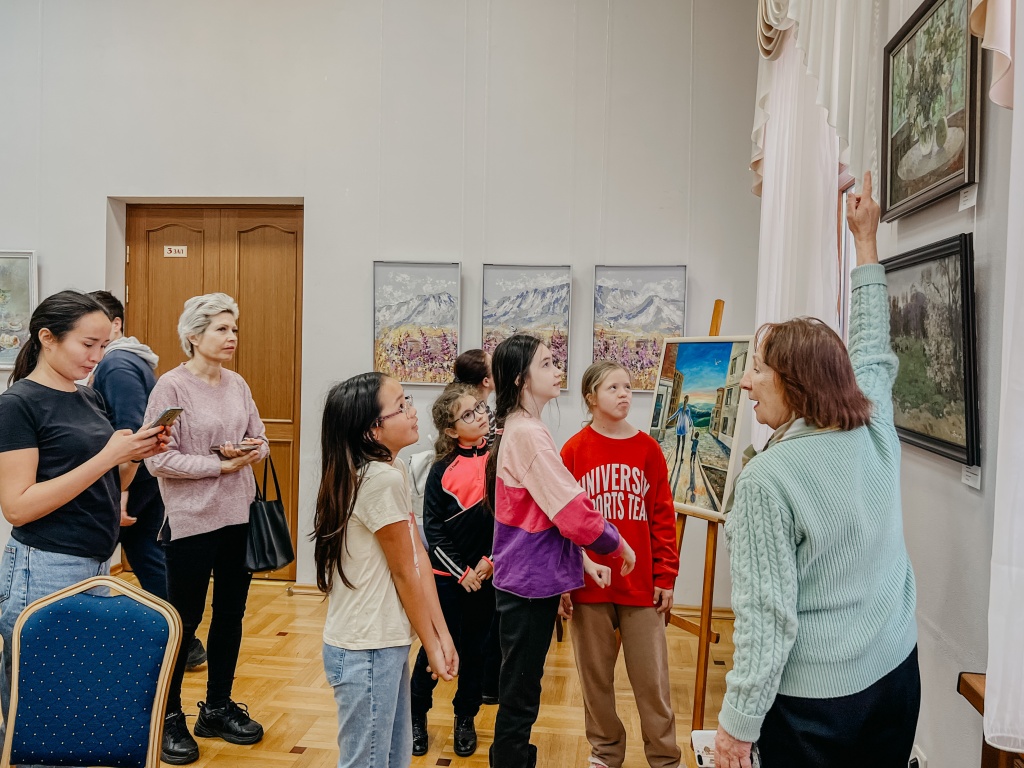 В первый раз увиденные на выставке «Весеннее настроение» картины членов Союза дизайнеров России вызывали восторг у юных посетителей из Сочинского реабилитационного центра и их родителей.
