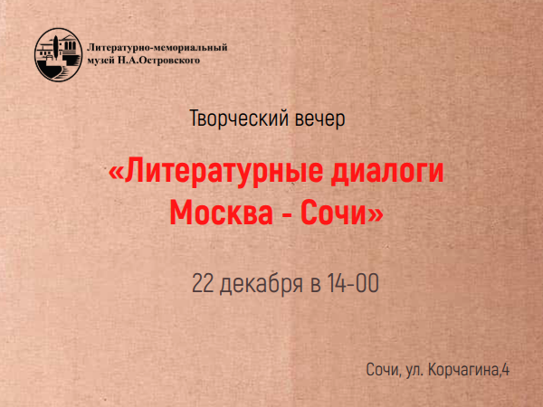 Приглашаем на творческий вечер «Литературные диалоги Москва - Сочи»