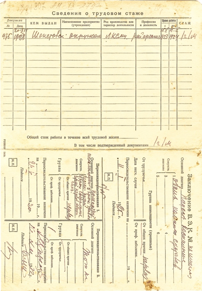 Отметки о переосвидетельствовании и уточнении диагноза датируются 11 января 1925 года, 24 мая 1930 г., 10 декабря 1932 г., 22 декабря 1936 г.