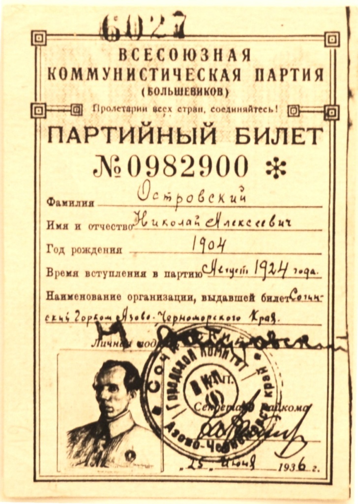 Партийный билет № 0982900 Н.А. Островского.