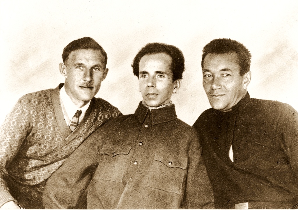 Берсенев Лев Николаевич (слева), Островский Николай Алексеевич (в центре), Солдатов Анатолий Данилович. Фотопортрет групповой. Зима 1934г. Сочи. Ореховая ул., № 47, кв. 4.