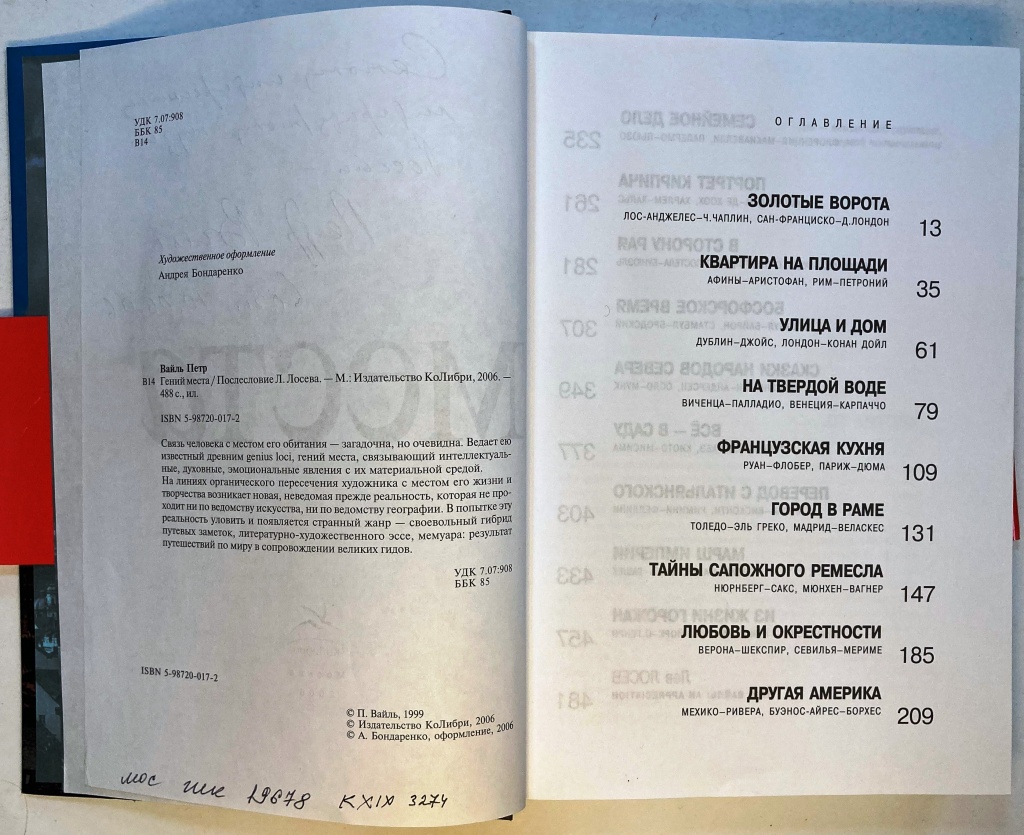Вайль П. Гений места / Послесловие Л. Лосева. М.: КоЛибри, 2006. 488 с.